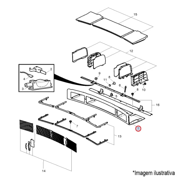 MOLDURA PRATELEIRA PORTA-OBJETOS SUPERIOR TRAS. CABINE CAMINHÃO VOLVO FH