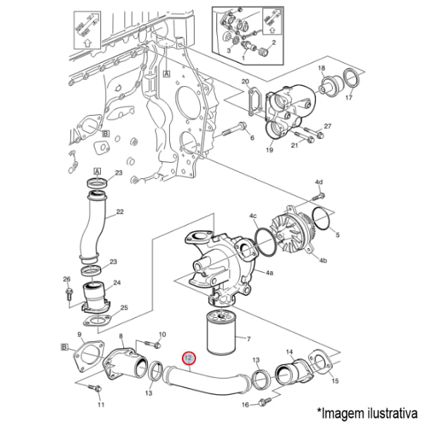 Tubo da bomba d agua para caminhão Volvo FH 12 / FM 12 / NH 12 e ônibus Volvo B12 R e muito mais você encontra aqui na Dex Peças!