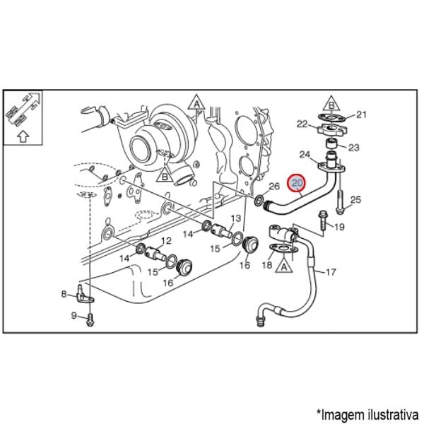 Tubo de retorno de óleo do motor para caminhão Volvo FH 12 / FH 16 / FM 9 / FM 12 / NH 12 e ônibus Volvo B12 B / B12 R / B12 M e muito mais você encontra aqui na Dex Peças!